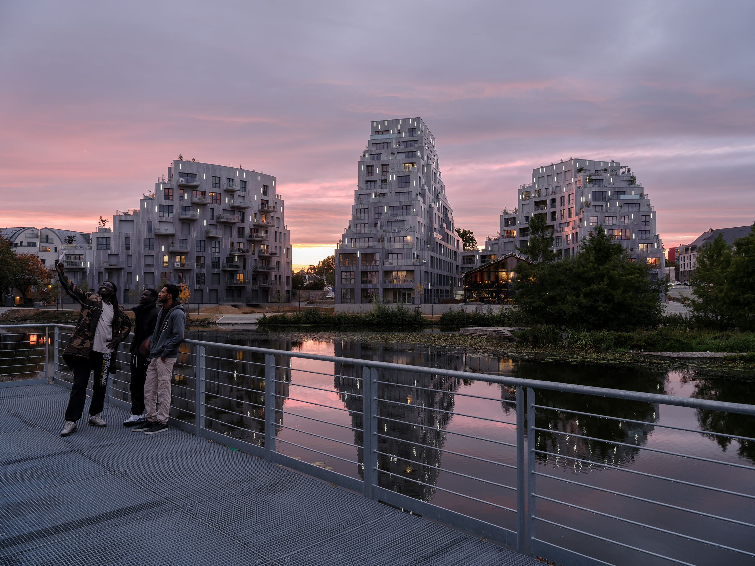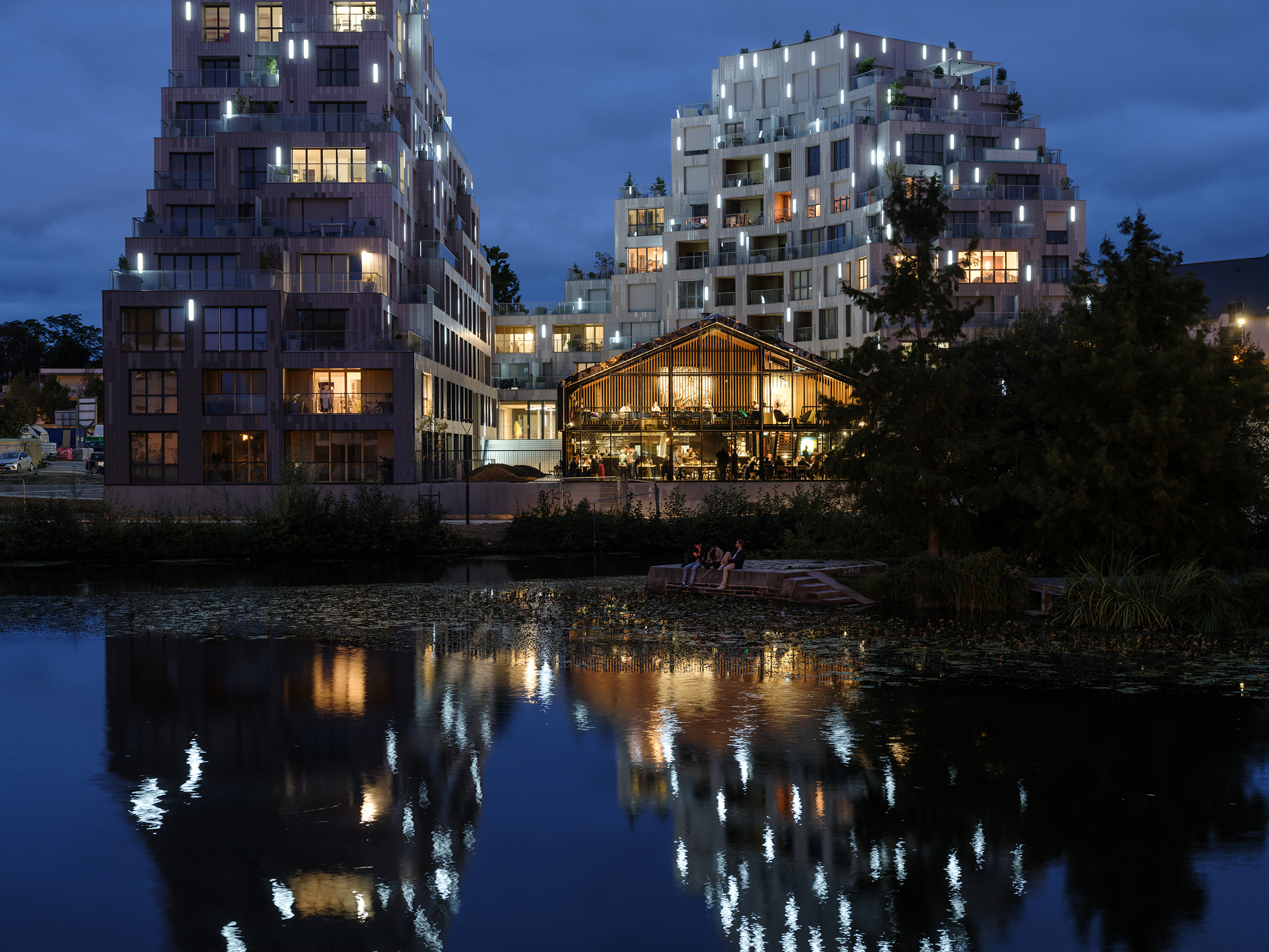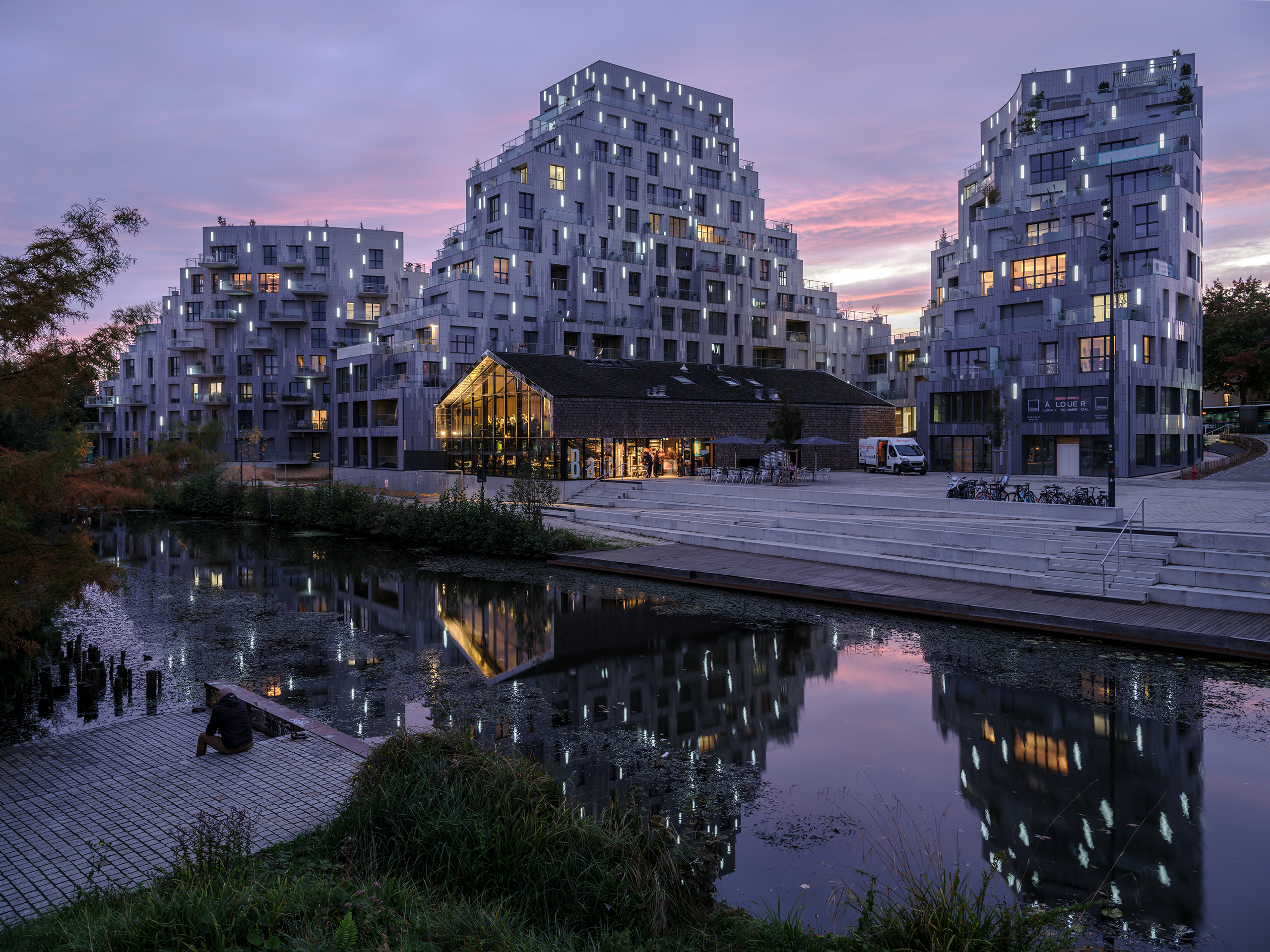 Occupying a crucial transitional space between the Rennes’ centre and its outer reaches, the 12-storey, 10,550-square-metre Ascension Paysagère brings much-needed density in the context of the city’s outward growth, providing 138 homes in a variety of sizes and price ranges – including 37 units of social housing – as well as commercial spaces and pleasant new public spaces in a green waterside environment.